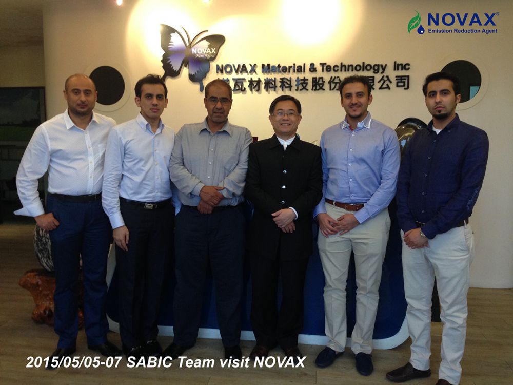 沙烏地阿拉伯SABIC Inc.( Saudi Basic Industries Corporation)等共計5位外賓及台肥古德添副總經理於104年5月5日前來諾瓦材料科技參訪,由楊聯智董事長親自接待進行會議交流。會中,透過深入淺出及務實詳細公司現況的介紹與說明,讓外賓進一步了解諾瓦材料及國際化的未來發展;此外,外賓亦針對實驗室量測方法進行交流,提升雙邊研究水準,嚴格監控尿素原料的品質。雙方對於所談的議題皆非常感興趣,不斷提出想法分享,對未來加強實質合作關係,並發展成全球夥伴關係都抱持樂觀態度。