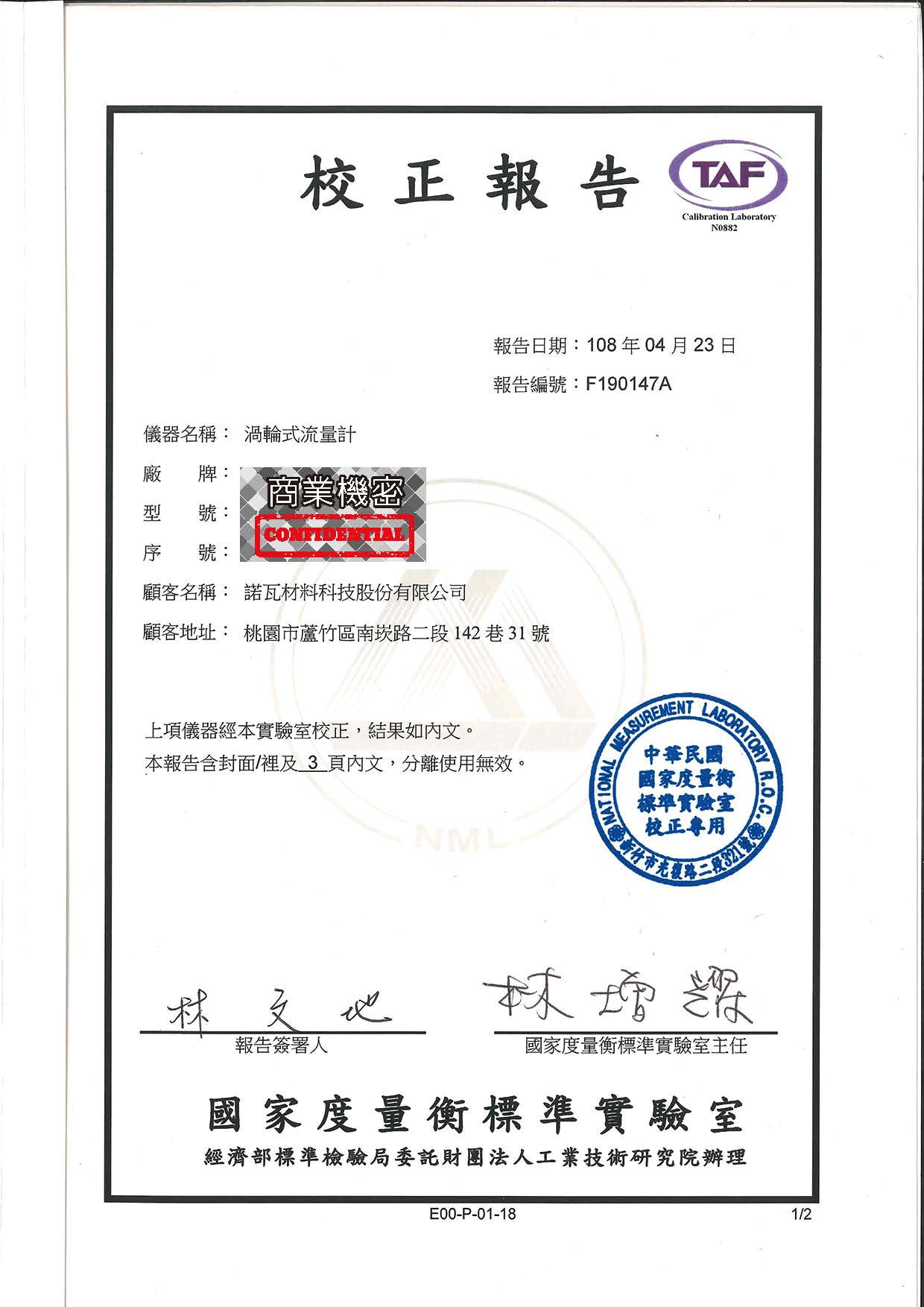 渦輪式流量計校正報告_F190147A_108.4.23