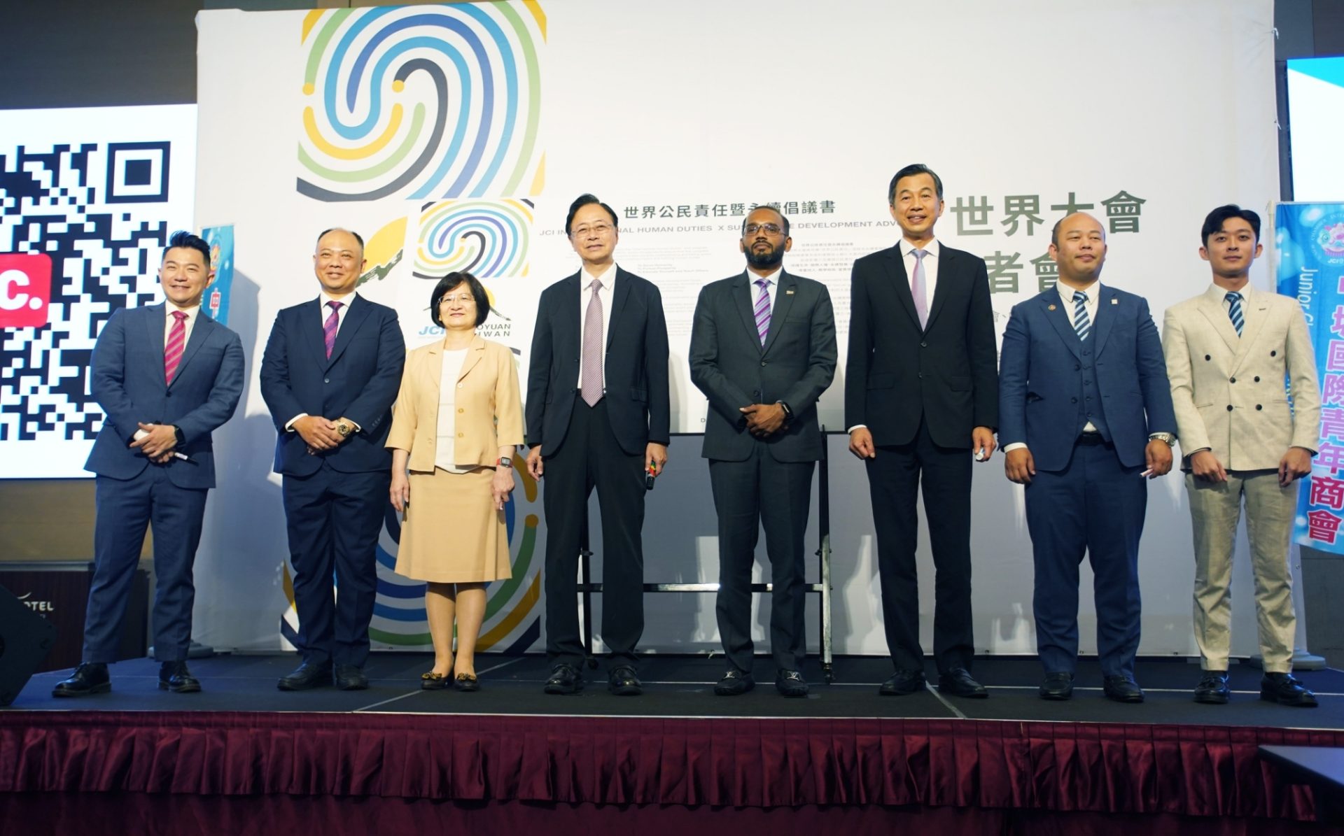 今日外交部非政府組織國際事務會執行長陳剛毅及經濟部國際貿易署主任秘書戴婉蓉也特別代表中央政府出席記者會,代表臺灣向國際趨勢接軌;戴主任秘書提到,國貿署長期耕耘臺灣永續會展,每年都會篩選指標性國際會展做為示範會展輔導案,這次2024國際青年商會世界大會便是其中一個案例,透過專家團隊客製化協助主辦單位朝向落實SDGs面向目標,也將投入資源在此次活動中,讓各國貴賓體驗臺灣的獨特!而外交部代表陳執行長也肯定臺灣國際青年商會長期投入公益熱情,成為社會的一股進步力量,也肯定團隊的努力爭取到這次世界大會在台灣舉辦;期望從現在到未來,能夠共同在永續發展上都能夠持續實際行動投入其中,增進國際連結、發揮臺灣在世界舞台的影響力。
