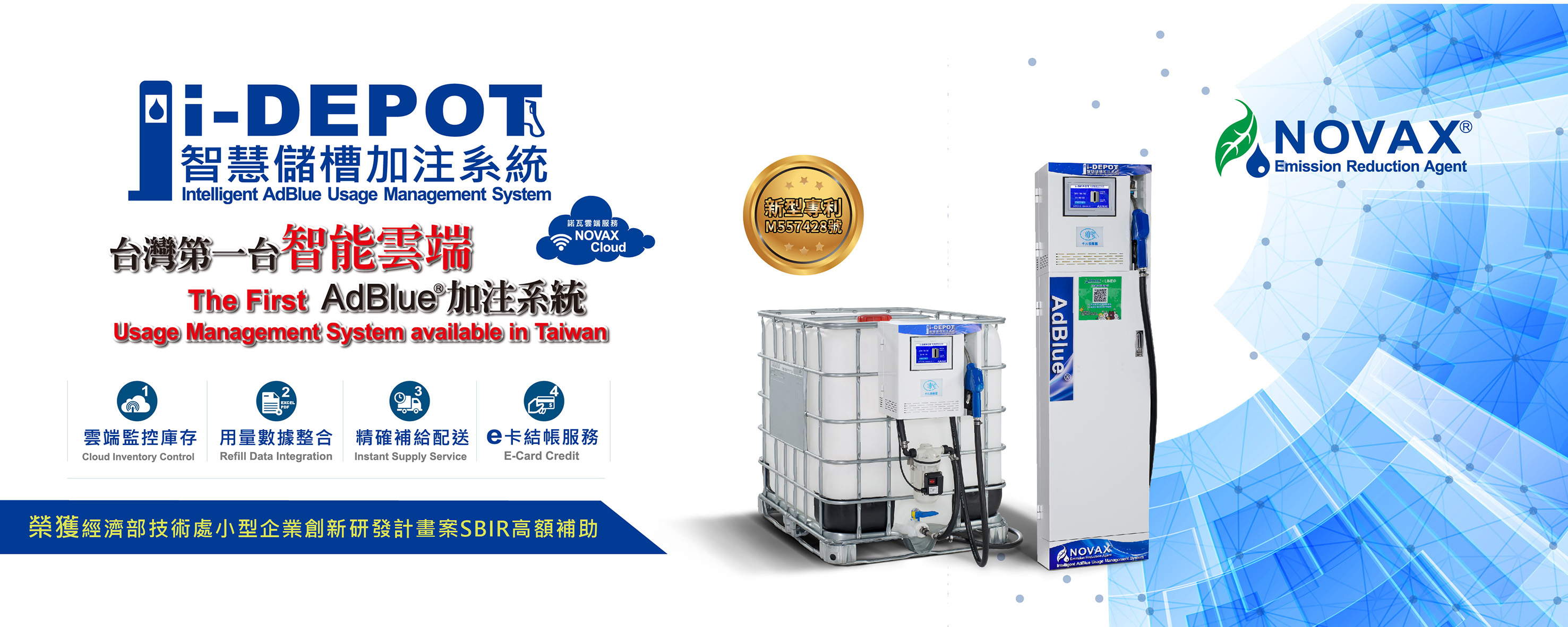 在台灣AdBlue®的現有市場,供應商超過百分之九十九的供貨模式為被動式的服務方式,其需要仰賴客戶以目視檢視儲槽液位管後再提出需求,這樣的互動方式已經直接或者間接影響作業的不流暢並造成成本的流失。因此,諾瓦有鑒於過去傳統的加注設備,推出新的創新服務計畫,設計並上市推出『智慧儲槽加注系統 i-Depot』,此產品將會為未來的營運規劃帶來更加清楚的方向,也將以破壞性的創造力,改變未來服務的方式,並提高市場需求。